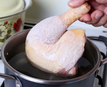 - Se pone a hervir la pechuga de pollo, una vez hervida se desmenuza.